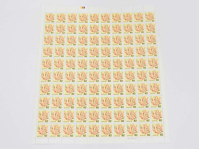 未使用品 日本切手 ウメ 82円 1シート(100枚)8.200円 カラーマーク 上
