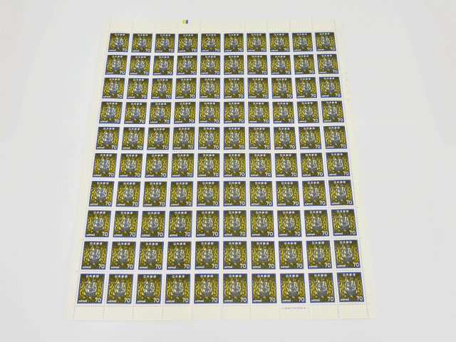 未使用品 日本切手 普通切手 法隆寺金銅小幡 70円 100枚 1シート 7.000円分