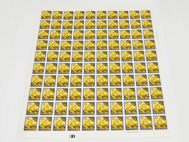 未使用品 日本切手 普通切手 法隆寺金銅小幡 70円 100枚 1シート 7.000円分
